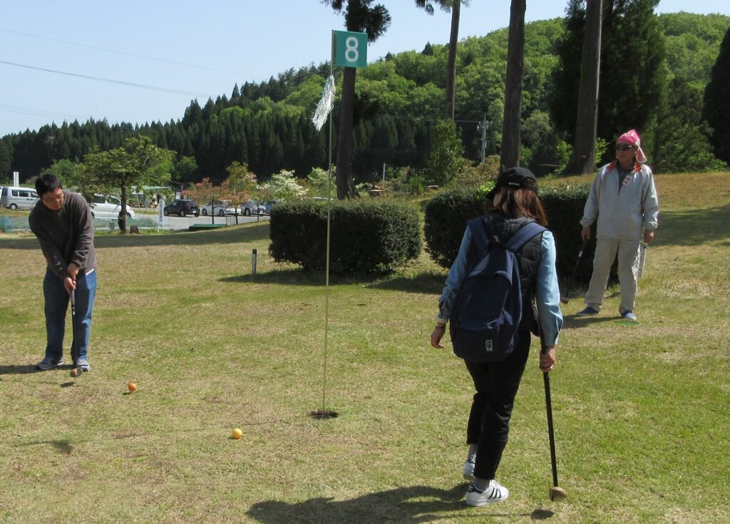 パークゴルフでは、日差しが暑い中、和気あいあいと楽しくコースを回りました。